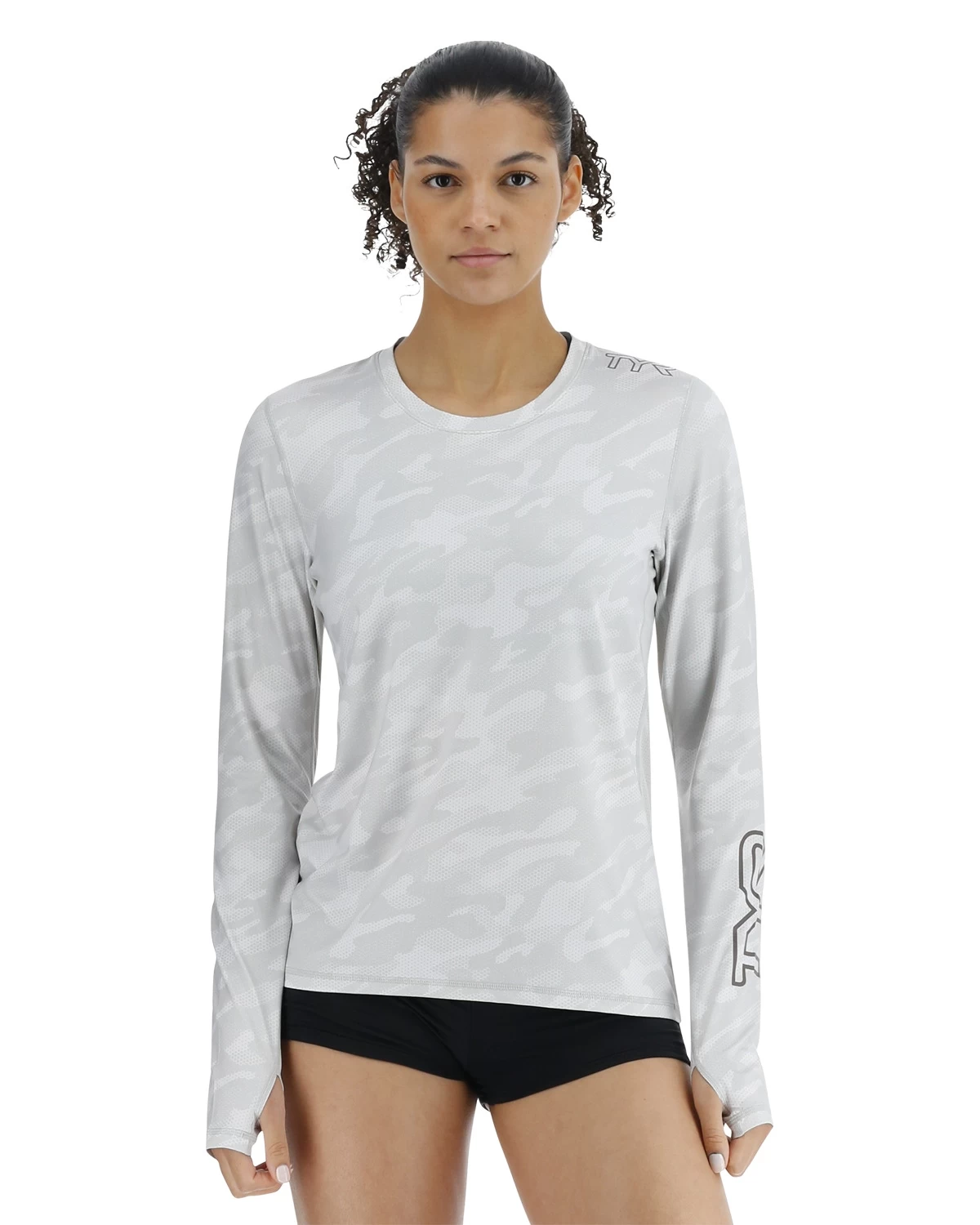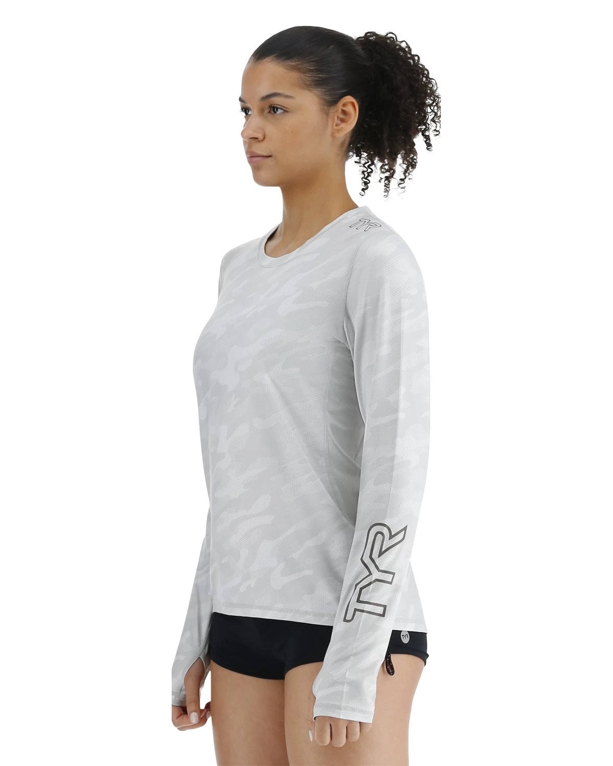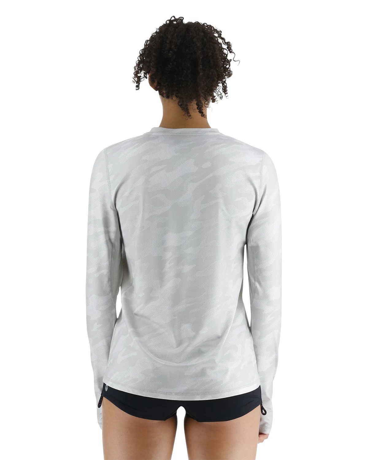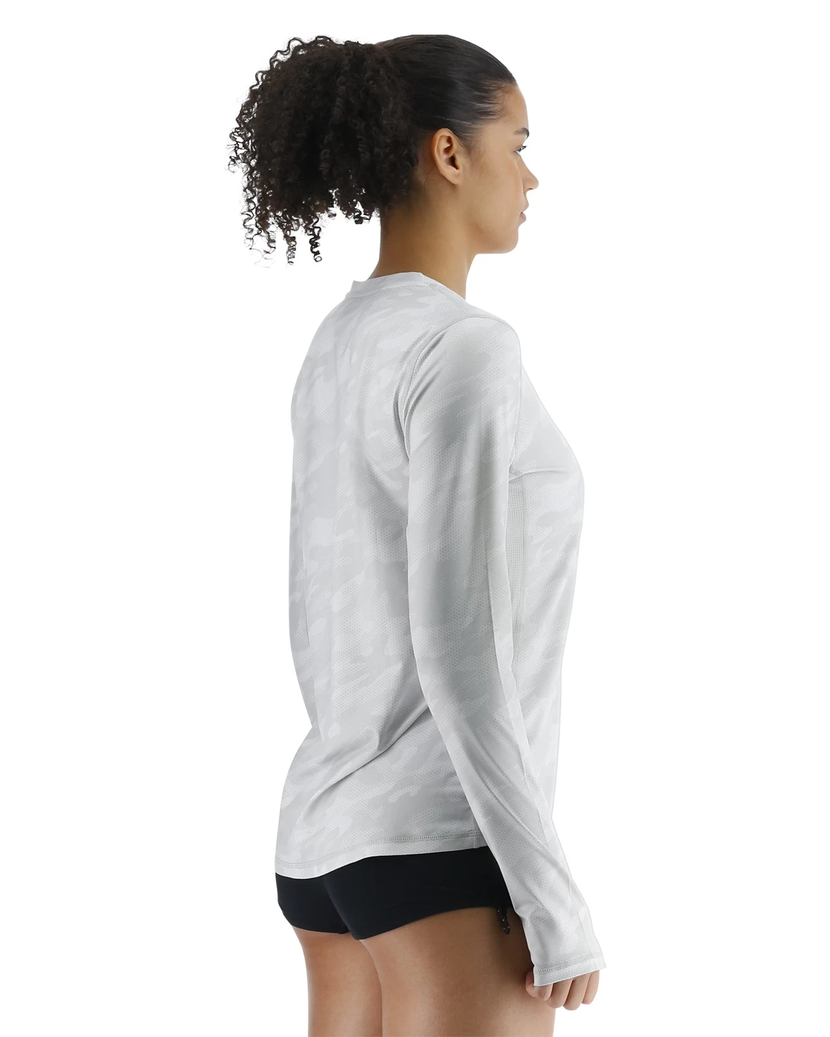 The TYR SunDefense Vented Long Sleeve Crew Shirt – Camohex has the most effective UV protectant coverage for outdoor adventurists.